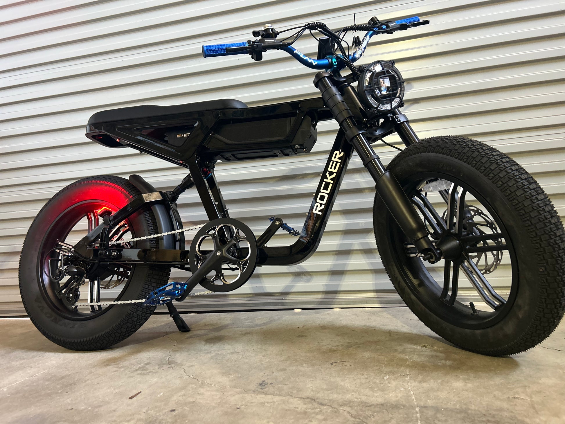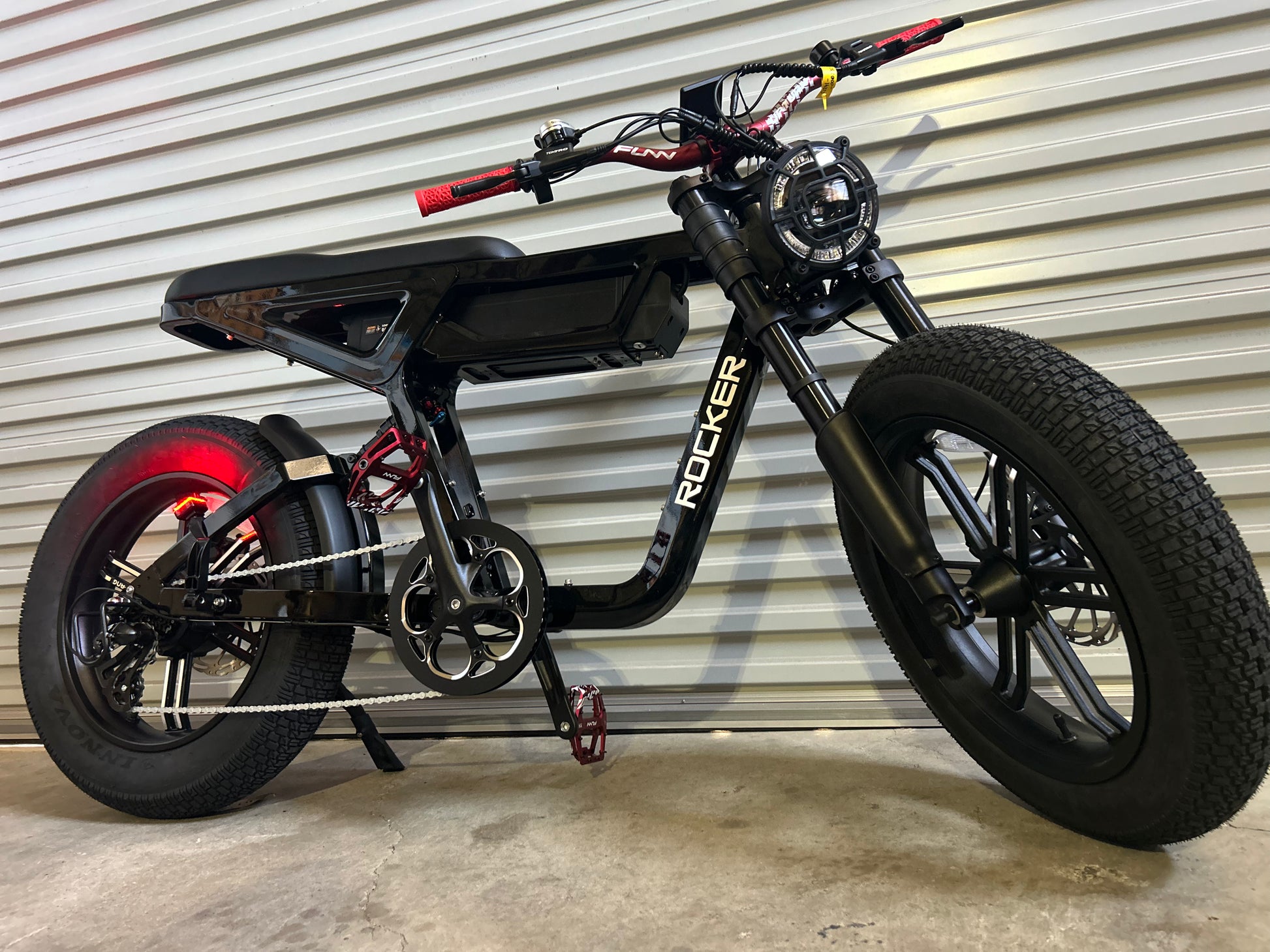 The Rocker Racer Naked is pure attitude on two wheels – it’s the Rocker eBike stripped down to the bare essentials, reborn with the raw, minimalist styling of a café racer motorbike. No fluff, no fuss, just clean lines, fat tyres, and a powerful motor that makes every ride feel like a rebellion on the road. It’s equal parts performance and style – lightweight, fast, and unapologetically bold. If you want an eBike that turns heads, rides hard, and looks like it belongs outside a vintage café at midnight, the Rocker Racer Naked is the one.