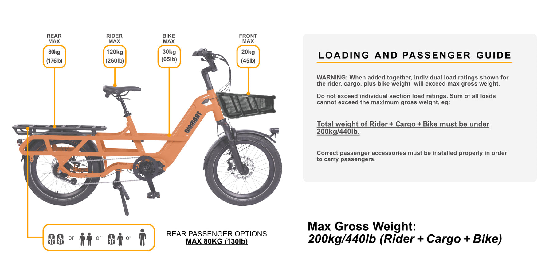 - 200 kg (440 lb) Maximum Gross Vehicle Weight